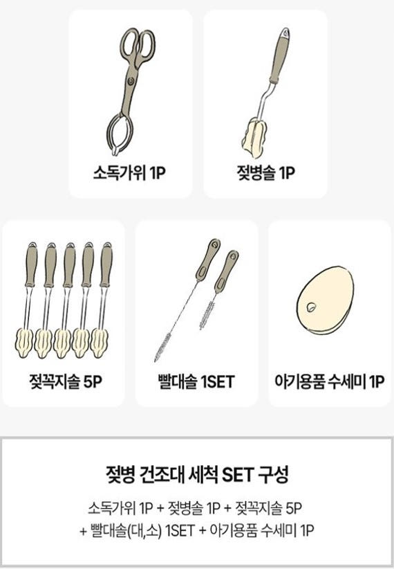 (젖병솔1P+젖꼭지솔 5P+빨대솔 1SET+소독가위 1P+수세미 1P ) 80PPI 젖병 유아 위생용품